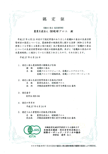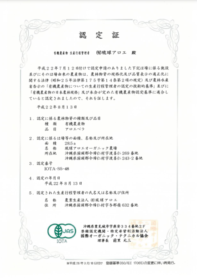 事業主体名 | 農業生産法人 有限会社琉球アロエ |